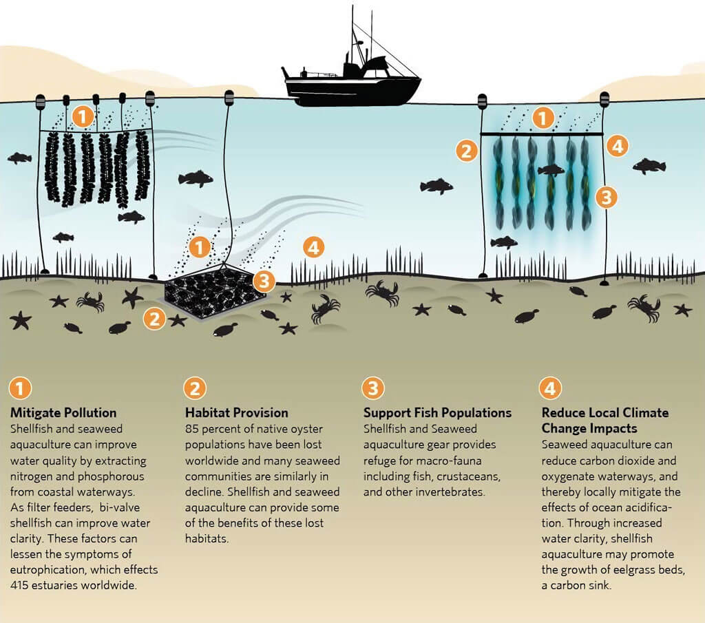 Answering the question: Whether seaweed & shellfish cultivation could help Solving-FCB ? If so, how?