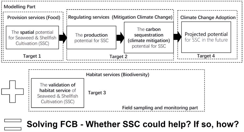 • Target 1: Quantify the expansion potential of marine seaweed and bivalves cultivation (Modelling based)