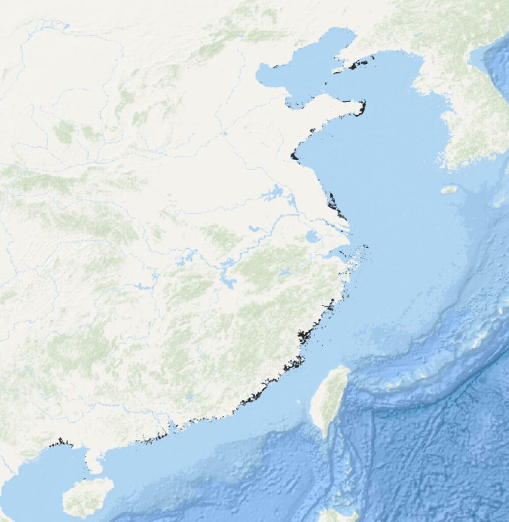 Marine environment suitability map for seaweed & bivalve cultivation (in China);