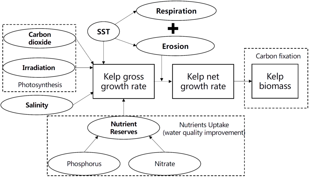 Quantify the impact of climate change on seaweed cultivation production / ecosystem service potential.