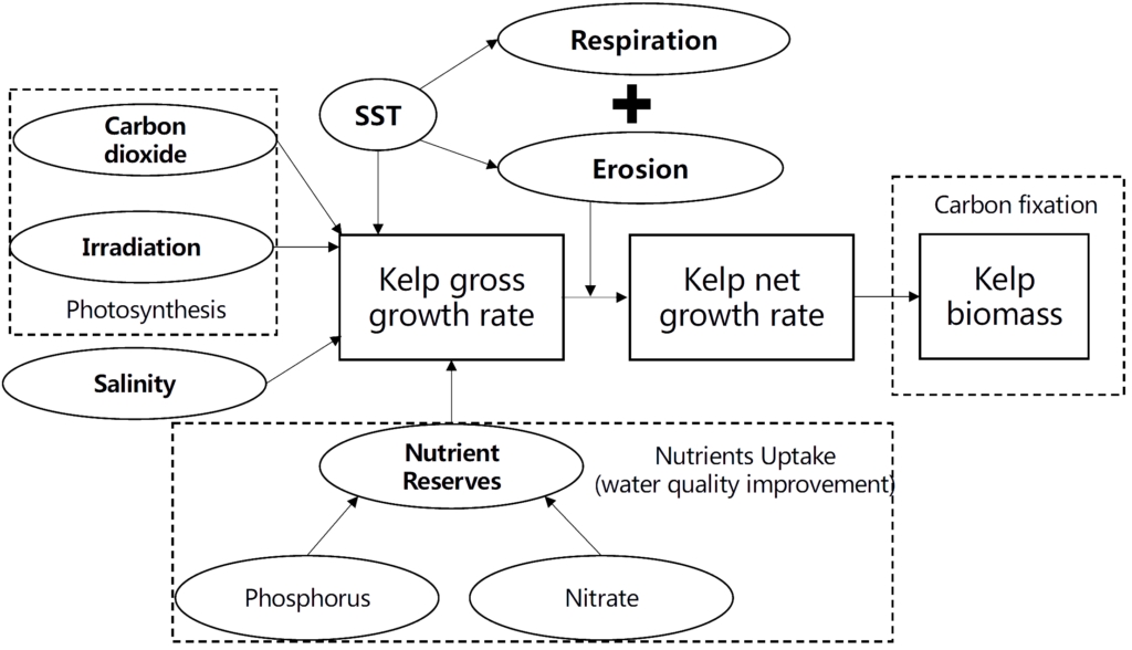 • Quantify the impact of climate change on seaweed cultivation production / ecosystem service potential.