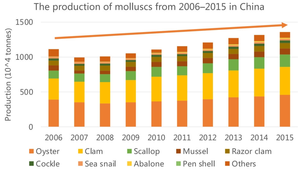 The production of molluscs from 2006–2015 in China. Data source: Mao et al., 2019